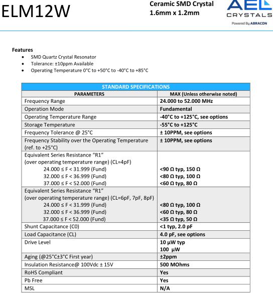 AEL晶振,ELM12W晶振,ELM12W-24.000MHz-6-R120-D7X-T晶振,貼片晶振本身體積小,超薄型石英晶體振蕩器,特別適用于有目前高速發展的高端電子數碼產品,因為晶振本身小型化需求的市場領域,小型,薄型是對應陶瓷振蕩器(偏差大)和普通的石英晶體振蕩器(偏差小)的中間領域的一種性價比較出色的產品.產品廣泛用于筆記本電腦,無線電話,衛星導航SSD,USB,Blu-ray等用途,符合無鉛焊接的高溫回流焊曲線特性.AEL晶體有限公司是ISO 9002-2008認可的供應商,目前管理著廣泛的國際認可的藍籌客戶。