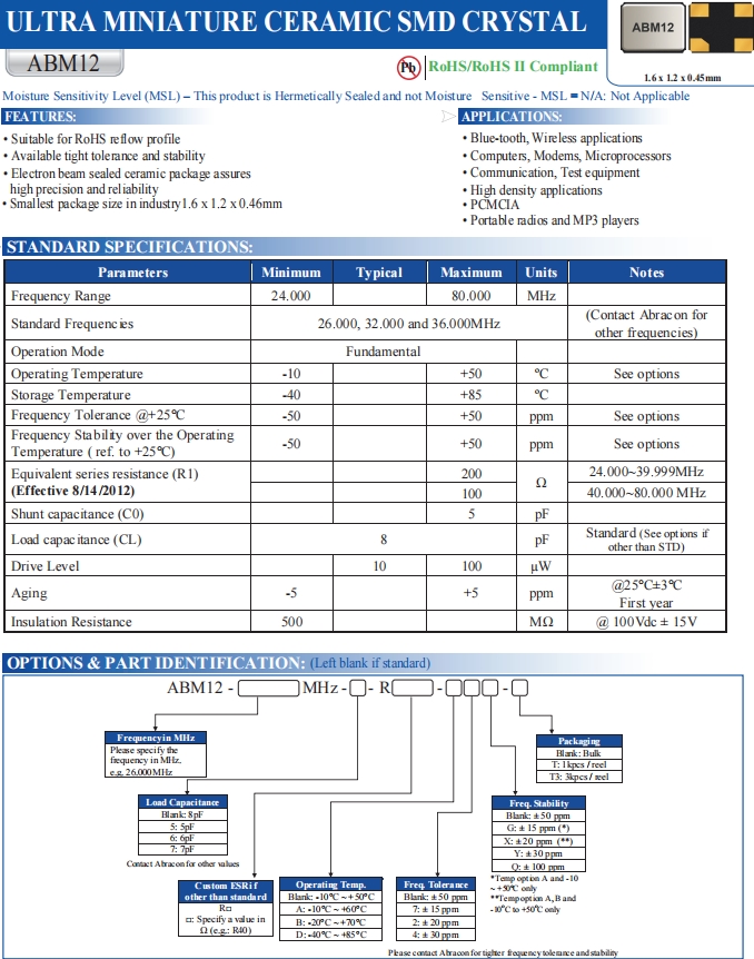 | ABM12-116-26.000MHZ-T3 | Abracon晶振 | ABM12 | MHz Crystal | 26MHz |