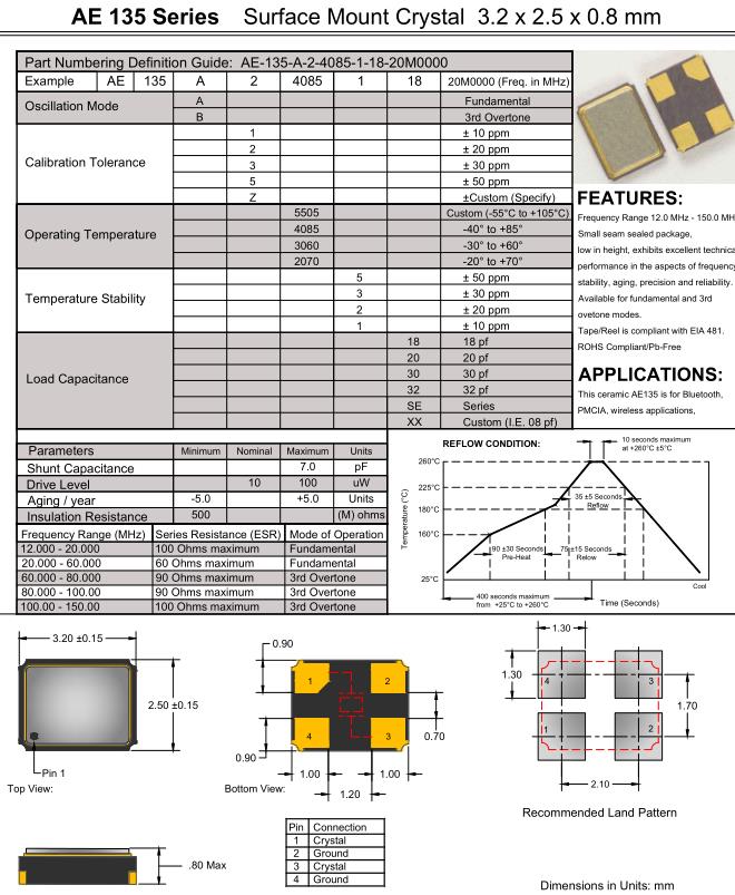 Anderson晶振,AE135晶振,AE135-A24085118-20M0000晶振