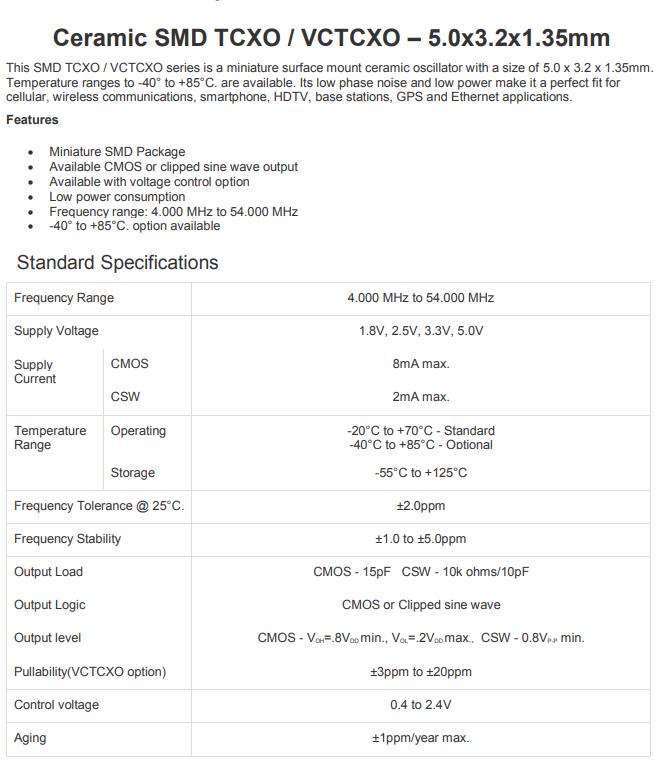 | Pullability(VCTCXO option) | ±3ppm to ±20ppm | |