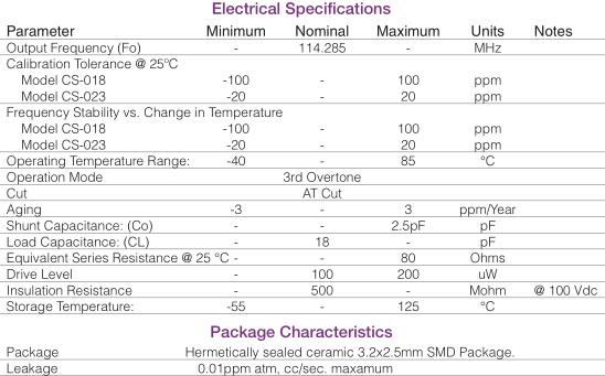康納溫菲爾德晶振,CS-023晶振,CS-023-114.285M晶振