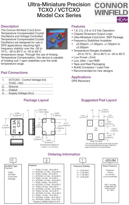 康納溫菲爾德晶振,CCX晶振,C31-020.0M晶振