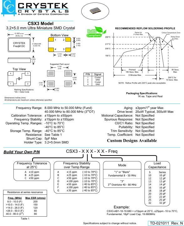 Crystek晶振,CSX3晶振,CSX3AD314-24.000M晶振