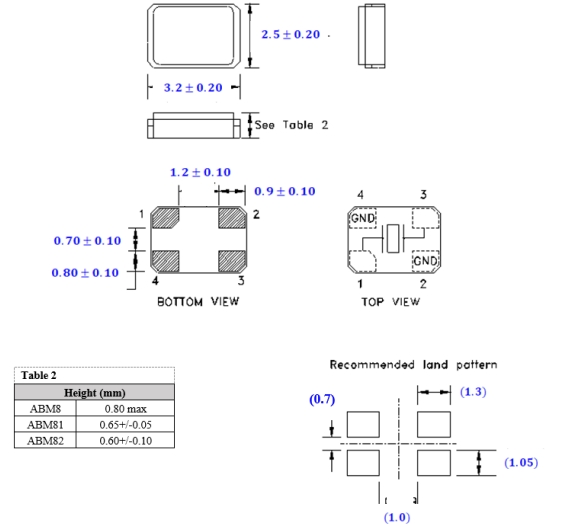 | ELM10-16.000MHz-8-R60-2-D20-T | AEL晶振 | ELM10 | MHz Crystal | 2.5mm | 2mm | 0.5mm |