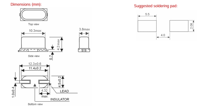 | Size/Dimension尺寸 | 12.3*4.5*4.2mm | 安裝方式 Installation: | Surfacemount |