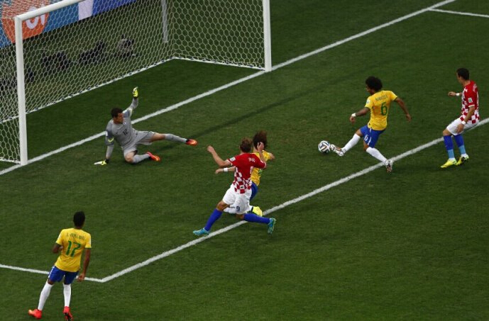 巴西世界杯揭幕戰打的那個激烈啊,東道主巴西隊攻入4球,以3:1戰勝克羅地亞隊,你不會忘了這場巴西人的獨角戲,也不會忘了馬塞洛的這記烏龍球。