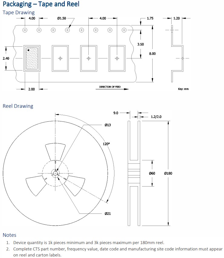 | 402F192XXCLR | CTS晶振 | 402 | MHz Crystal | 19.2MHz | 4-SMD, No Lead |