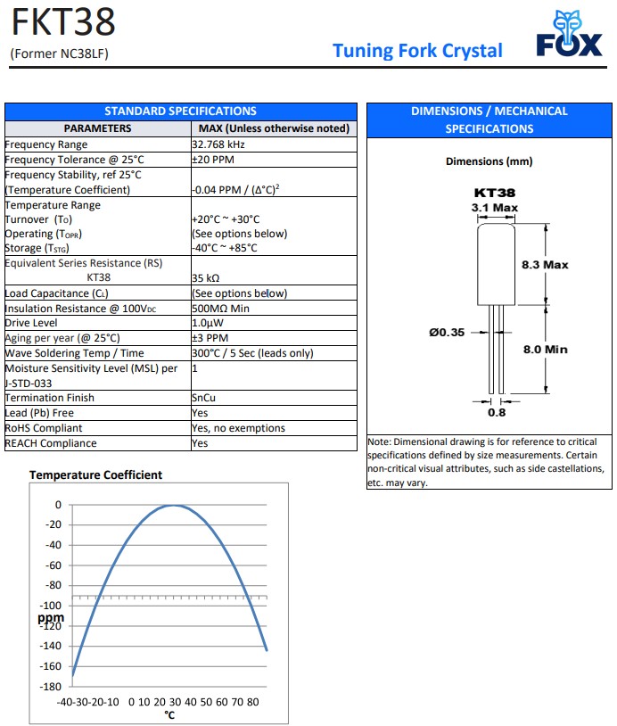 | FSXLF327 | Fox Crystal | FSXLF | kHz Crystal (Tuning Fork) | 32.768kHz |