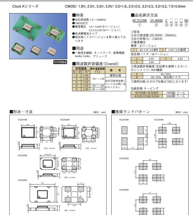 | KC2520K25.0000C1GE00 | AVX Corp/Kyocera Corp | KC2520K, Kyocera | Active | 25MHz | 1.6 V ~ 3.63 V | -40°C ~ 85°C |