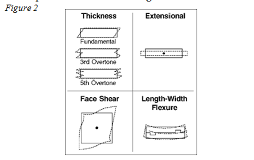 如上所示的進(jìn)口晶振元件以各種模式振動(dòng),其中最重要的是拉伸、彎曲和剪切.振動(dòng)模式?jīng)Q定了給定元件的最大頻率、穩(wěn)定性與溫度的關(guān)系以及電阻.各種振動(dòng)模式如圖2所示,而各種頻率穩(wěn)定性與溫度的比較如圖3所示.