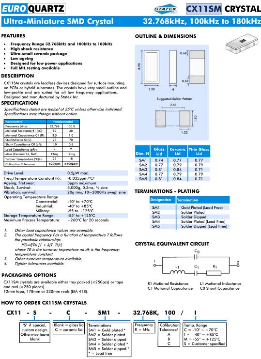 Euroquartz晶振,CX11SM晶振,CX11-S-C-SM1-32.768K,100/I晶振