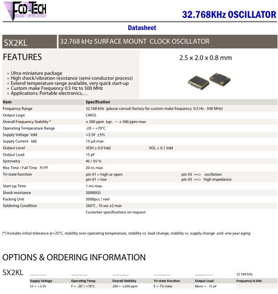 FCD-Tech晶振,SX2KL晶振,SX2KL-33F200E15-32.768kHz晶振