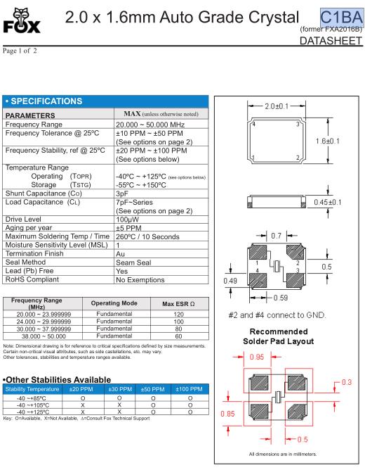 FOX晶振,C1BA晶振,FC1BACBEI20.0晶振