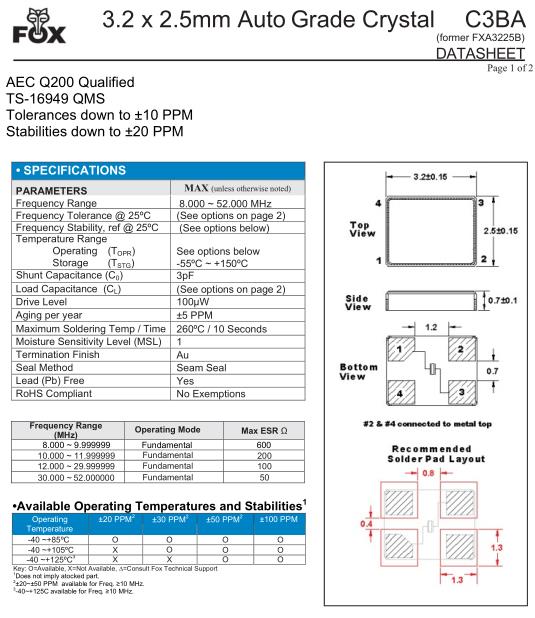 | FOX晶振規(guī)格 | 單位 | C3BA晶振頻率范圍 | 石英晶振基本條件 | |