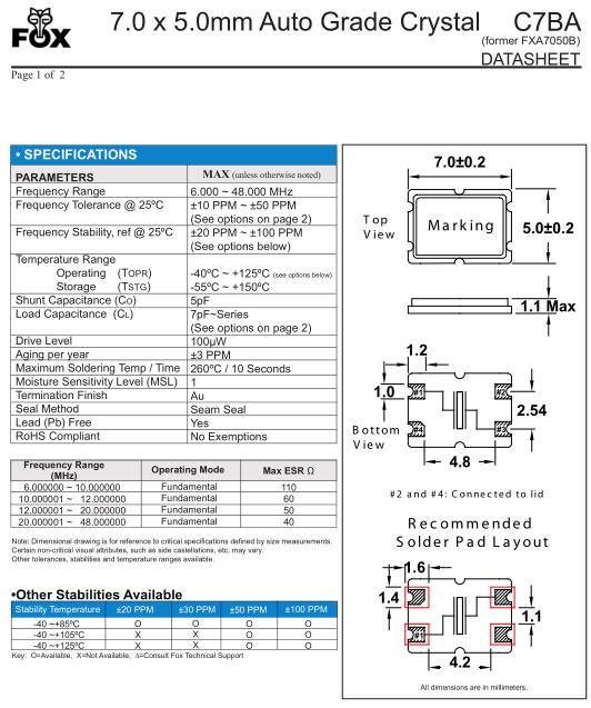 | FOX晶振規格 | 單位 | C7BA晶振頻率范圍 | 石英晶振基本條件 |