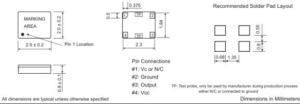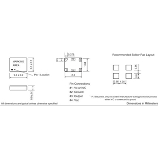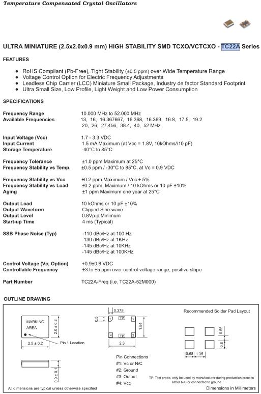| Frequency Stability vs Temp. | ±0.5 ppm / -30°C to 85°C, at Vc = 0.9 VDC |