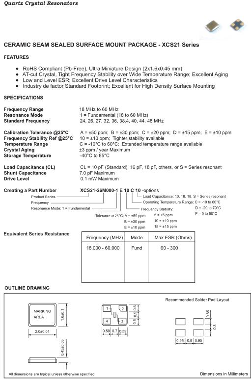 Fortiming晶振,XCS21晶振,XCS21-26M000-1E10C10晶振