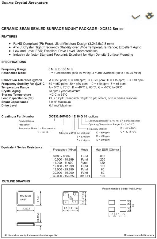 | Resonance Mode | 1 = Fundamental (8 to 80 MHz); 3 = 3rd Overtone (60 to 156.25 MHz) |