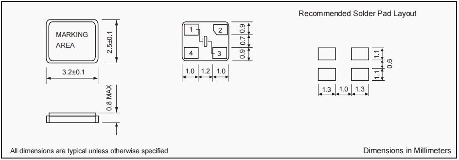 | 晶體老化 | ±3 ppm / year Maximum |