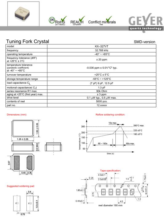 格耶晶振,KX–327VT晶振,超小型晶振