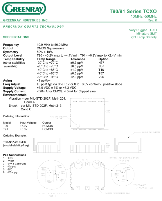 Greenray晶振,T90晶振,T90-N57-20.0MHz晶振