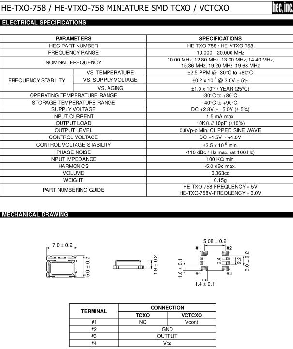 HEC晶振,HE-TXO-758晶振,HE-TXO-758-20.00M晶振