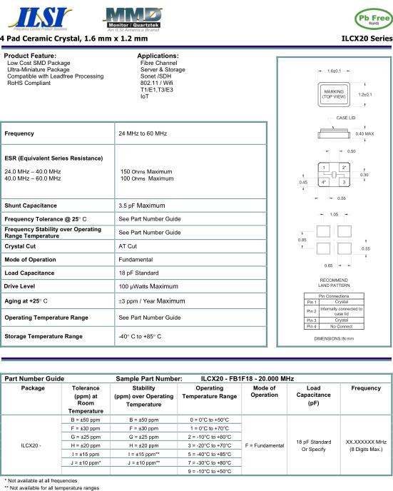 ILSI晶振,ILCX20晶振,ILCX20-FB1F18-20.000MHz晶振