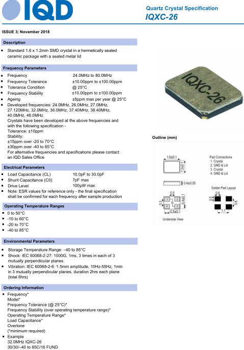 IQD晶振,IQXC-26晶振,32.0MHz-IQXC-26-30/30晶振
