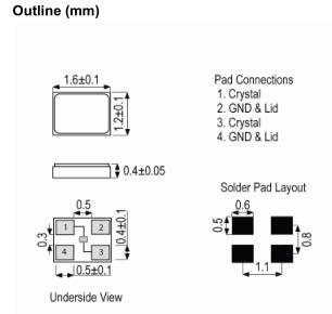 | Ageing | ±5ppm max per year @ 25°C |