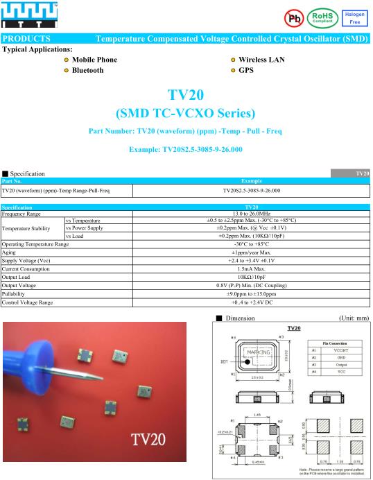 ITTI晶振,TV20晶振,TV20S2.5-3085-9-26.000晶振
