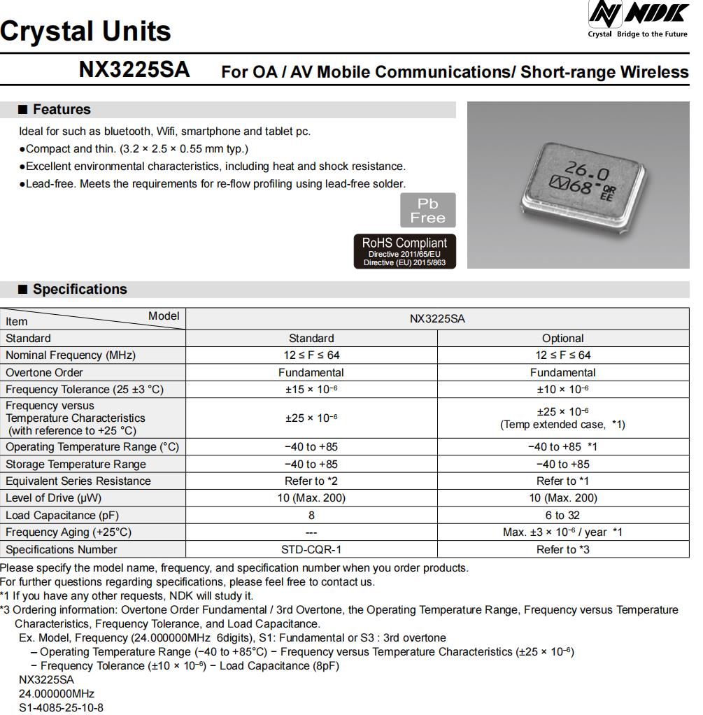 | 項目 | 型號 | NX3225SA | |||||||