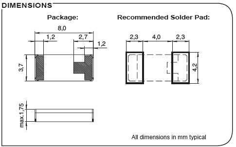 - 尺寸:8.0 x 3.7 x 1.75 mm