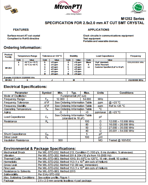 M12526JM48.000000MHz晶振,進口MtronPTI晶振,航天飛行器晶振