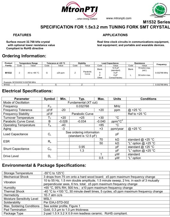 MtronPTI晶振,M1532晶振,M15322GZ0.032768MHz晶振