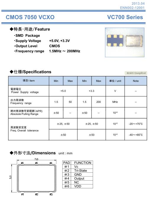 NAKA晶振,VC700晶振,7050mm有源晶振