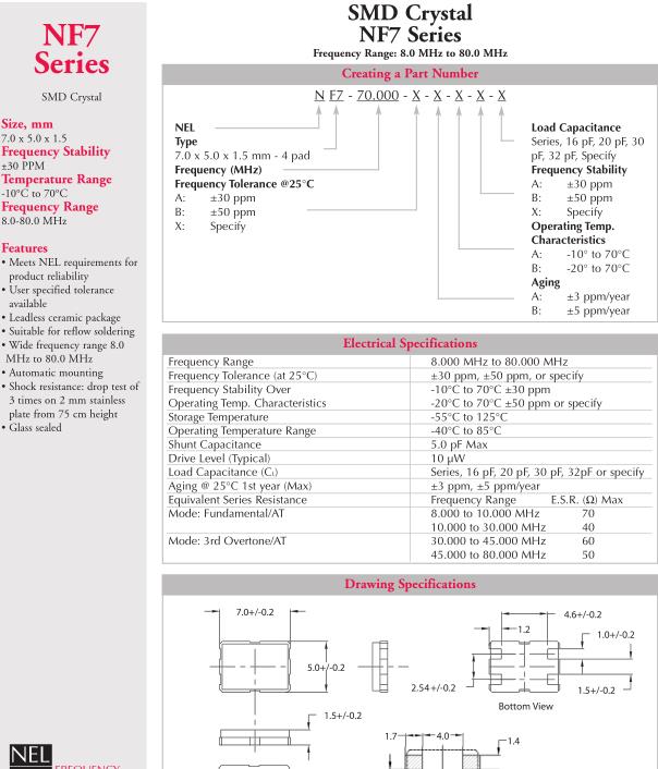NEL晶振,NF7晶振,NF7-70.000-BABB-20pF晶振