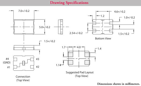 | Operating Temp. Characteristics | -20°C to 70°C ±50 ppm or specify |