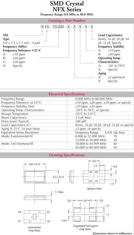 NEL晶振,NFX晶振,NFX-70.000-CAAB-30pF晶振