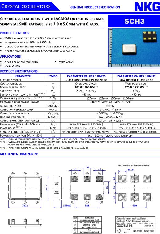 NJR晶振,SCH3晶振,SCH36B-125.000MTS-EXT晶振,小型SMD有源晶振,從最初超大體積到現在的7050mm,6035mm,5032mm,3225mm,2520mm體積,有著翻天覆地的改變,體積的變小也使產品帶來了更高的穩定性能,接縫密封石英晶體振蕩器,精度高,覆蓋頻率范圍寬的特點,SMD高速自動安裝和高溫回流焊設計,Optionable待機輸出三態輸出功能,電源電壓范圍:1.8V~5V,高穩定性,低抖動,低功耗,主要應用領域:無線通訊,高端智能手機,平板筆記本WLAN,藍牙,數碼相機,DSL和其他IT產品的晶振應用,三態功能,PC和LCDM等高端數碼領域,符合RoHS/無鉛.