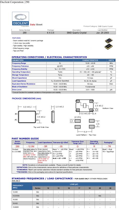 奧斯康利晶振,290晶振,290-12.0M-SR-05-G-R-TR晶振