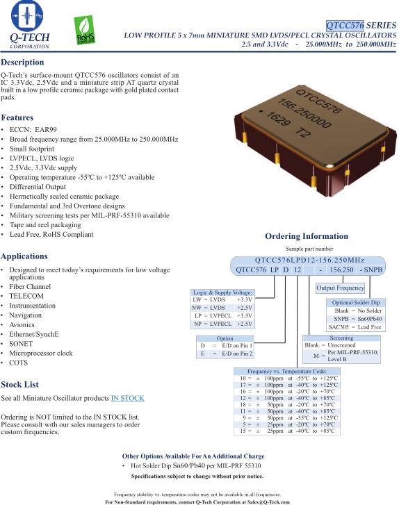 Q-Tech晶振,QTCC576LP晶振,QTCC576LPD12-26.000MHz晶振