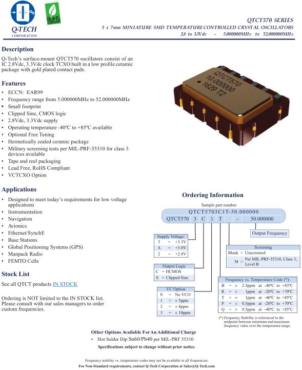 Q-Tech晶振,QTCT570晶振,QTCT5703C1T-24.000000晶振