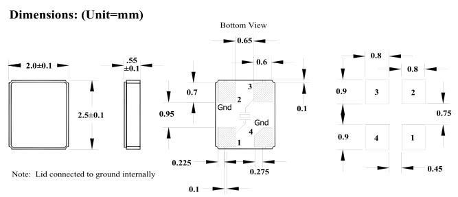 | Load Capacitance (CL) | 10pF Standard (see Crystal Part Number Guide for more details) | |