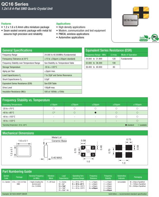 QANTEK晶振,QC16晶振,QC1624.0000F12B45R晶振