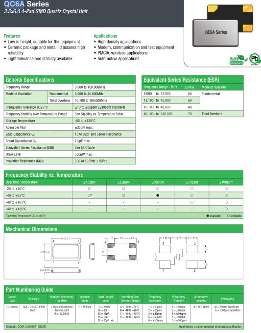 QANTEK晶振,QC6A晶振,QC6A12.0000F12B33R晶振