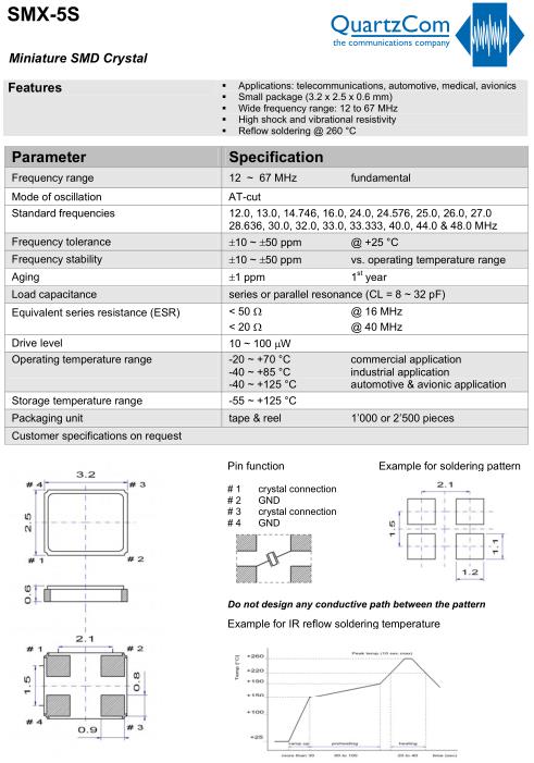 | QuartzCom晶振規(guī)格 | 單位 | SMX-5S晶振頻率范圍 | 石英晶振基本條件 |