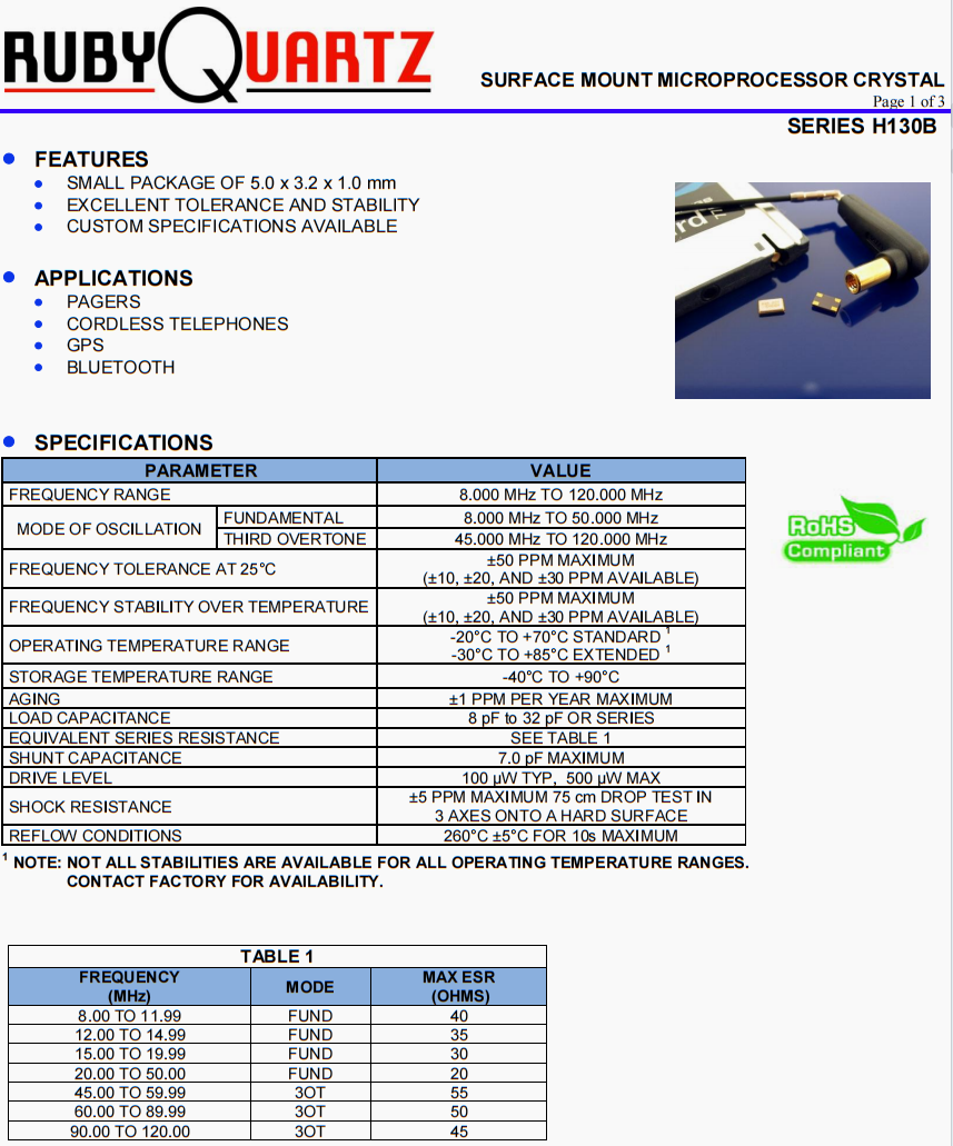 H130B-27.120-20-TR晶振,Rubyquartz四腳晶振,移動(dòng)通訊晶振