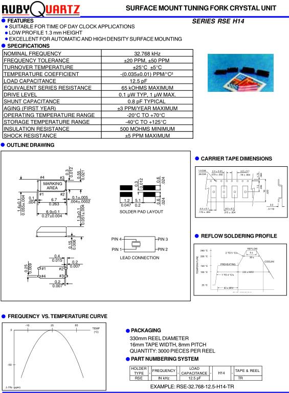 Rubyquartz晶振,H14晶振,RSE-32.768-12.5-H14-TR晶振