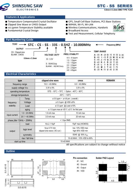 新松晶振,STC-SS晶振,STC-CS-SS-33S-0.5HZ-12.000MHz晶振,小型SMD有源晶振,從最初超大體積到現(xiàn)在的7050mm,6035mm,5032mm,3225mm,2520mm體積,有著翻天覆地的改變,體積的變小也使產(chǎn)品帶來了更高的穩(wěn)定性能,接縫密封石英晶體振蕩器,精度高,覆蓋頻率范圍寬的特點(diǎn),SMD高速自動(dòng)安裝和高溫回流焊設(shè)計(jì),Optionable待機(jī)輸出三態(tài)輸出功能,電源電壓范圍:1.8V~5V,高穩(wěn)定性,低抖動(dòng),低功耗,主要應(yīng)用領(lǐng)域:無線通訊,高端智能手機(jī),平板筆記本W(wǎng)LAN,藍(lán)牙,數(shù)碼相機(jī),DSL和其他IT產(chǎn)品的晶振應(yīng)用,三態(tài)功能,PC和LCDM等高端數(shù)碼領(lǐng)域,符合RoHS/無鉛.