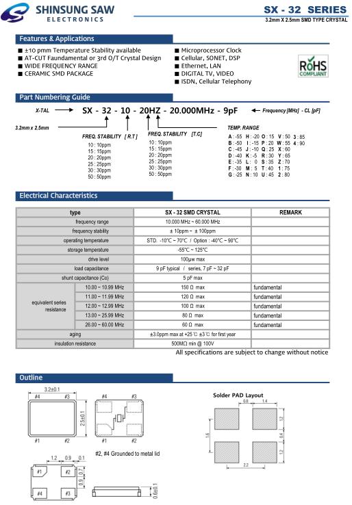 SHINSUNG晶振,SX-32晶振,SX-32-10-20HZ-20.000MHz-9pF晶振